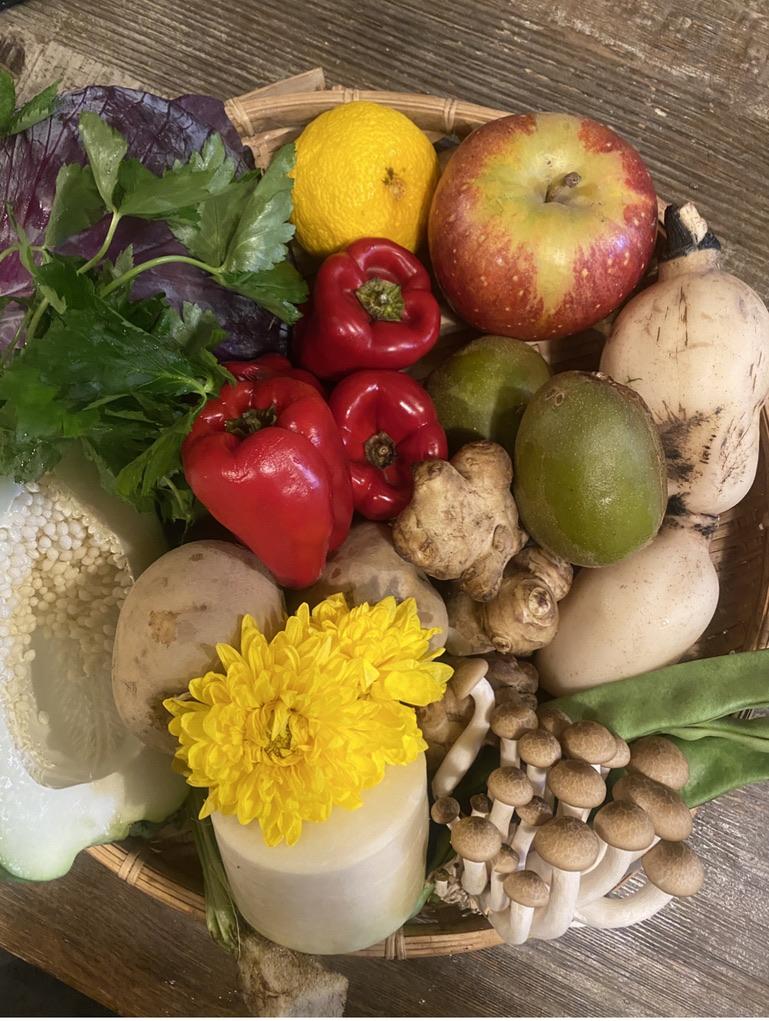 野菜も朝市場に行って、旬の野菜や果物たちを8品目前後一緒に煮込みます
